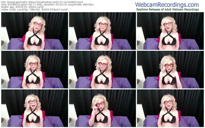 There are a total of 2,428 recordings (477 hours) of NinaHartley from Streamate available below.