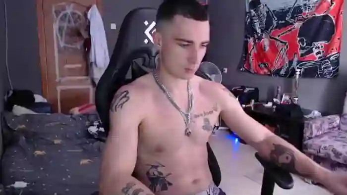 His birthday is January 1st 2002 making him 23 years old, and the average age of models on Flirt4Free is 25—making him one of the younger models. His height is 185cm, and his weight is 75kg. He identifies his ethnicity as caucasian. He has a natural pubic hair, athletic body with blue eyes and short brown hair.His body art includes tattoo(s).