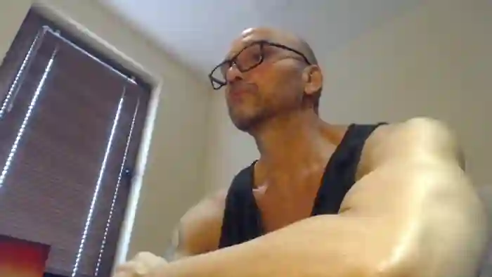His birthday is August 14th 1979 making him 46 years old, and the average age of models on Flirt4Free is 25—making him one of the older models. His height is 189cm, and his weight is 104kg. He identifies his ethnicity as other. He has a shaved pubic hair, muscular body with brown eyes and bald bald hair.His body art includes tattoo(s).