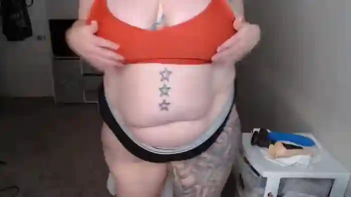 She is 37 years old, and the average age of models on Streamate is 30—making her one of the older models. Her height is 5'7, and her weight is 251 lbs. She identifies her ethnicity as white. She has a h cup size breasts, hairy pubic hair on a bbw body with green eyes and red hair.Her body art includes tattoos, piercings.