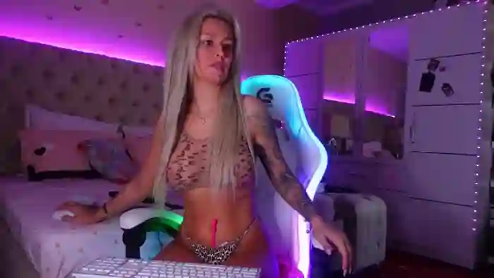 She is 26 years old, and the average age of models on Streamate is 30—making her one of the younger models. Her height is 5'9, and her weight is 121 lbs. She identifies her ethnicity as white. She has a d cup size breasts, bald pubic hair on an athletic body with hazel eyes and blond hair.Her body art includes tattoos, piercings.