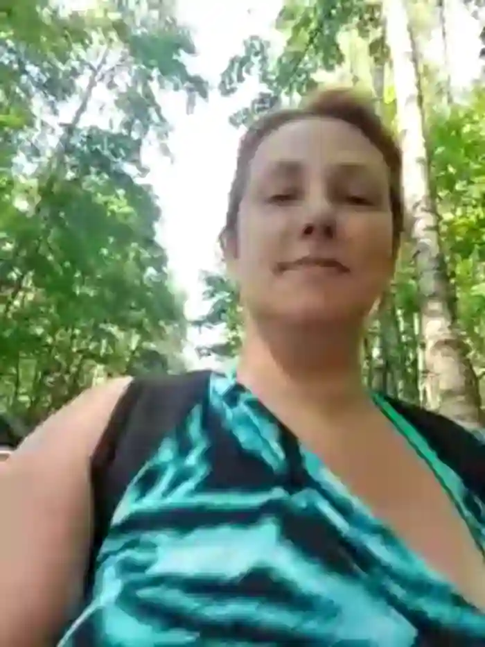 She identifies her ethnicity as white. She has a large body with blue eyes.