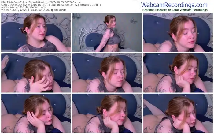 There are a total of 1,870 recordings (1,120 hours) of kira-fors from Flirt4Free available below.