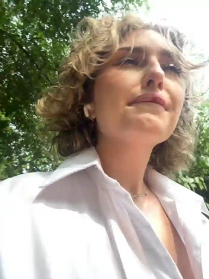 She is interested in men. She speaks English, German, and French.
