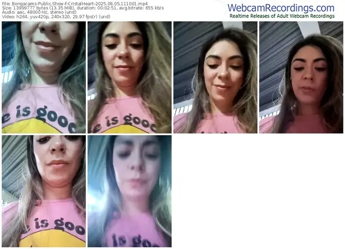There are a total of 237 recordings (143 hours) of CristalHeart from Bongacams available below.