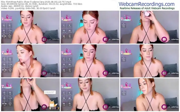 There are a total of 161 recordings (78 hours) of valerie-lara from Flirt4Free available below.