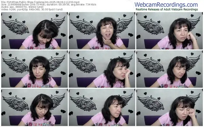 There are a total of 610 recordings (267 hours) of selena-lim from Flirt4Free available below.