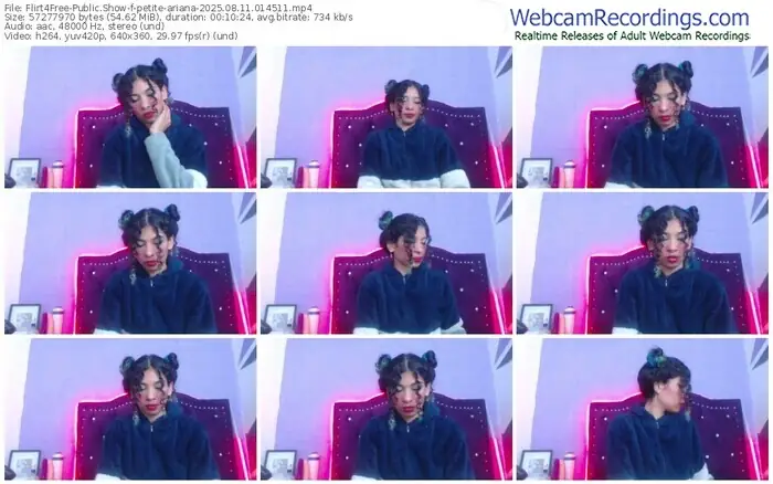 There are a total of 497 recordings (277 hours) of petite-ariana from Flirt4Free available below.