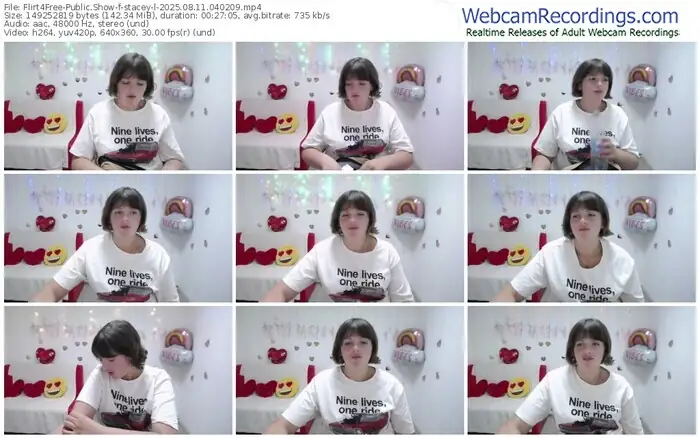 There are a total of 1,185 recordings (623 hours) of stacey-l from Flirt4Free available below.