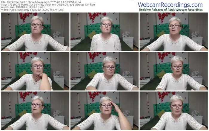 There are a total of 800 recordings (243 hours) of zoya-skye from Flirt4Free available below.