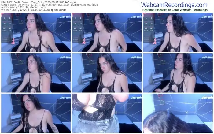 There are a total of 5 recordings (2 hours) of Zoe_Quin from MyFreeCams available below.