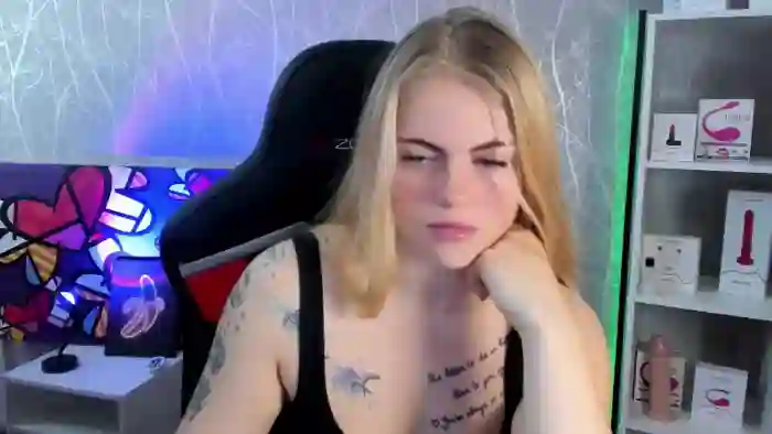 She is 30 years old. Her height is 5'6, and her weight is 124 lbs. She identifies her ethnicity as white. She has a c cup size breasts, bald pubic hair on an average body with green eyes and blond hair.Her body art includes tattoos, piercings.