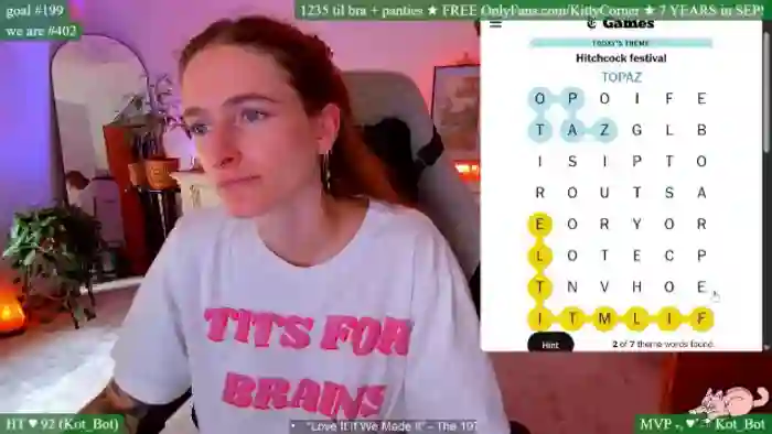 KittyCorner is a female webcam model from MyFreeCams.