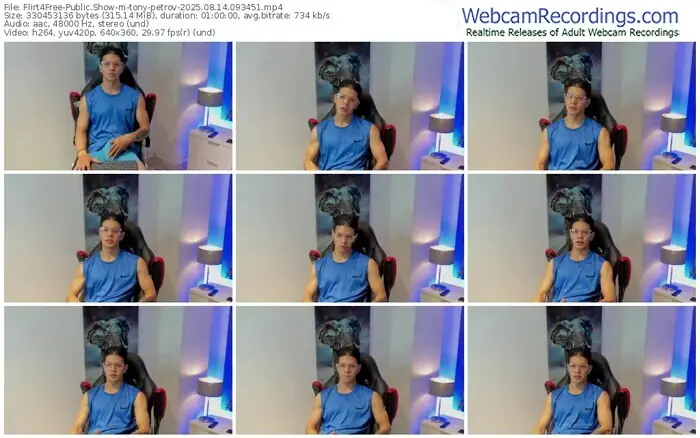 There are a total of 940 recordings (631 hours) of tony-petrov from Flirt4Free available below.