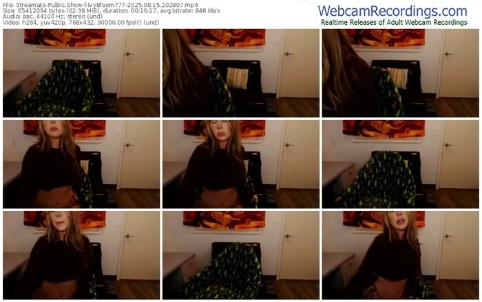 There are a total of 68 recordings (14 hours) of IvyBloom777 from Streamate available below.