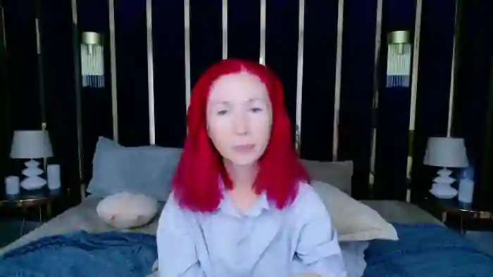 Her birthday is October 10th 1978 making her 47 years old, and the average age of models on Flirt4Free is 25—making her one of the older models. Her height is 158cm, and her weight is 47kg. She identifies her ethnicity as caucasian. She has a natural pubic hair, and c cup breasts on a slim body with grey eyes and average red hair.