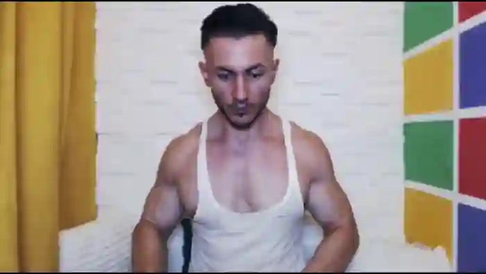 His birthday is May 11th 1993 making him 32 years old, and the average age of models on Flirt4Free is 25—making him one of the older models. His height is 176cm, and his weight is 87kg. He identifies his ethnicity as caucasian. He has a shaved pubic hair, muscular body with black eyes and short black hair.