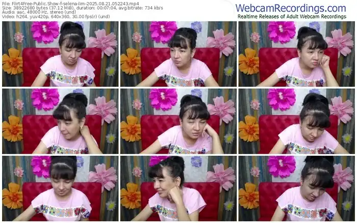 There are a total of 723 recordings (314 hours) of selena-lim from Flirt4Free available below.