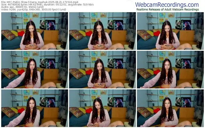 There are a total of 19 recordings (7 hours) of Daria_mashuk from MyFreeCams available below.