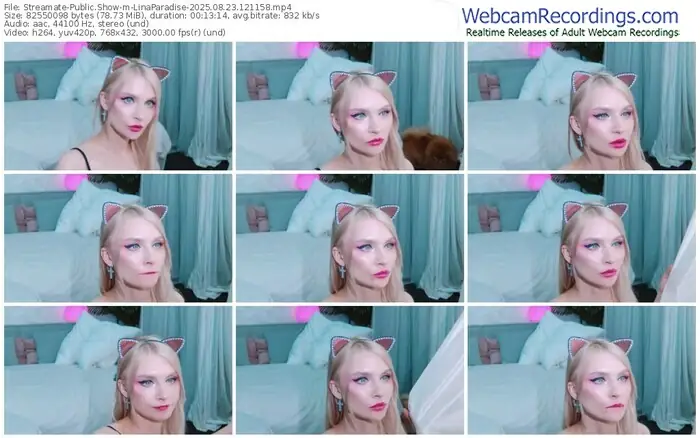 There are a total of 1,243 recordings (647 hours) of LinaParadise from Streamate available below.