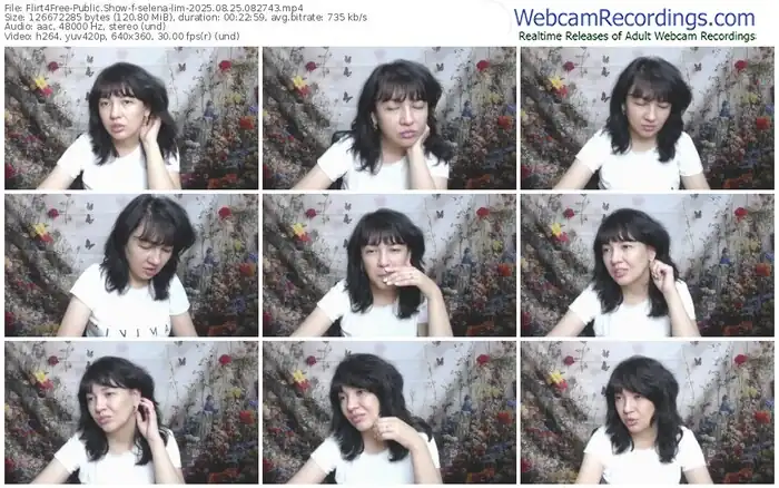 There are a total of 723 recordings (314 hours) of selena-lim from Flirt4Free available below.