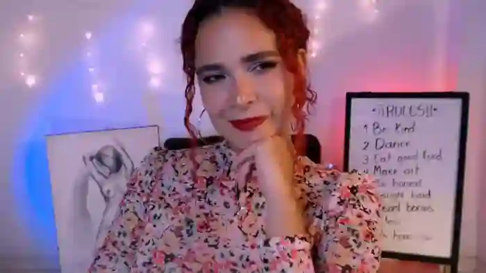 Her birthday is June 13th 1996 making her 29 years old, and the average age of models on Flirt4Free is 25—making her one of the older models. Her height is 165cm, and her weight is 62kg. She identifies her ethnicity as hispanic. She has a hairy pubic hair, and c cup breasts on a average body with brown eyes and long red hair.Her body art includes tattoo(s).
