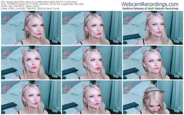 There are a total of 1,243 recordings (647 hours) of LinaParadise from Streamate available below.