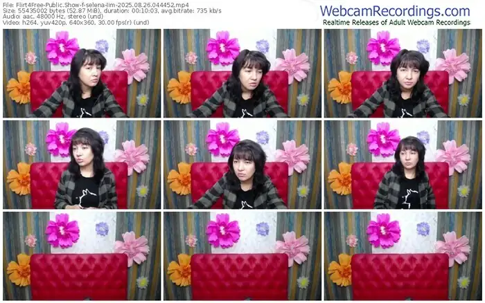 There are a total of 723 recordings (314 hours) of selena-lim from Flirt4Free available below.