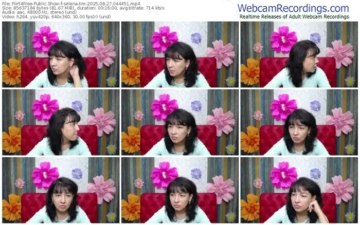 There are a total of 723 recordings (314 hours) of selena-lim from Flirt4Free available below.