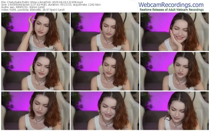 There are a total of 3,702 recordings (3,256 hours) of kira0541 from Chaturbate available below.