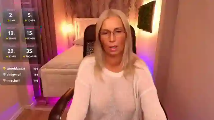 Her birthday is November 19th 1975 making her 50 years old, and the average age of models on Flirt4Free is 25—making her one of the older models. Her height is 162cm, and her weight is 67kg. She identifies her ethnicity as caucasian. She has a shaved pubic hair, and dd cup breasts on a average body with green eyes and average blonde hair.Her body art includes piercings.