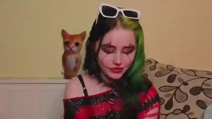 Her birthday is June 17th 2006 making her 19 years old, and the average age of models on Flirt4Free is 25—making her one of the younger models. Her height is 156cm, and her weight is 45kg. She identifies her ethnicity as other. She has a shaved pubic hair, and c cup breasts on a average body with blue eyes and short multi color hair.Her body art includes piercings, tattoo(s).