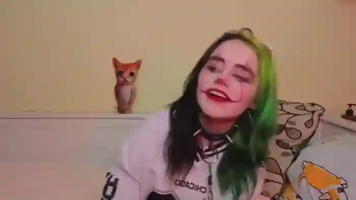 Her birthday is June 17th 2006 making her 19 years old, and the average age of models on Flirt4Free is 25—making her one of the younger models. Her height is 156cm, and her weight is 45kg. She identifies her ethnicity as other. She has a shaved pubic hair, and c cup breasts on a average body with blue eyes and short multi color hair.Her body art includes piercings, tattoo(s).