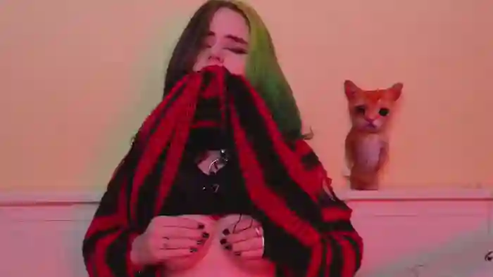 Her birthday is June 17th 2006 making her 19 years old, and the average age of models on Flirt4Free is 25—making her one of the younger models. Her height is 156cm, and her weight is 45kg. She identifies her ethnicity as other. She has a shaved pubic hair, and c cup breasts on a average body with blue eyes and short multi color hair.Her body art includes piercings, tattoo(s).