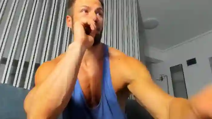 His birthday is July 17th 1987 making him 38 years old, and the average age of models on Flirt4Free is 25—making him one of the older models. His height is 180cm, and his weight is 93kg. He identifies his ethnicity as caucasian. He has a trimmed pubic hair, muscular body with blue eyes and short blonde hair.