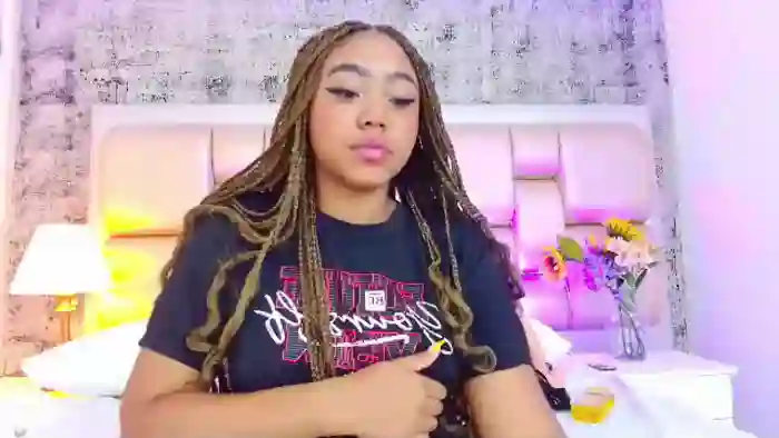 Her birthday is April 17th 2006 making her 19 years old, and the average age of models on Flirt4Free is 25—making her one of the younger models. Her height is 165cm, and her weight is 60kg. She identifies her ethnicity as black. She has a shaved pubic hair, and a cup breasts on a curvy body with brown eyes and long brown hair.Her body art includes tattoo(s).