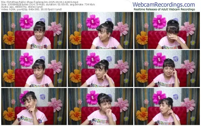 There are a total of 723 recordings (314 hours) of selena-lim from Flirt4Free available below.