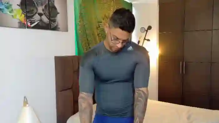His birthday is October 9th 1987 making him 38 years old, and the average age of models on Flirt4Free is 25—making him one of the older models. His height is 180cm, and his weight is 92kg. He identifies his ethnicity as hispanic. He has a trimmed pubic hair, muscular body with brown eyes and short black hair.His body art includes piercings, tattoo(s).