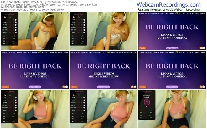 There are a total of 1,151 recordings (989 hours) of its_lily from Chaturbate available below.