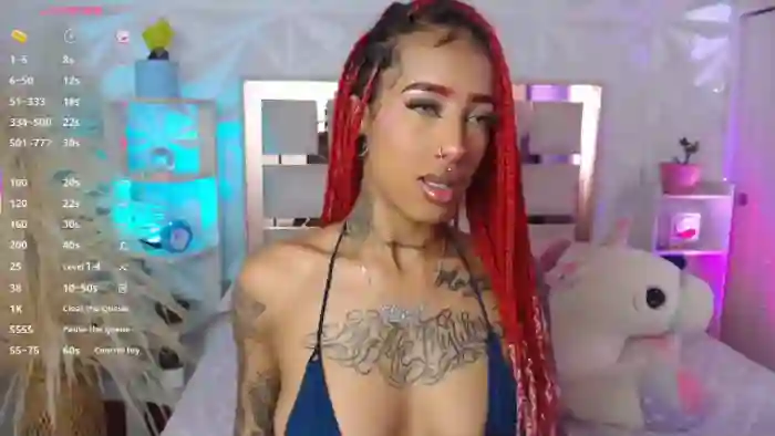 Her birthday is June 12th 2000 making her 25 years old. Her height is 165cm, and her weight is 52kg. She identifies her ethnicity as black. She has a trimmed pubic hair, and d cup breasts on a slim body with blue eyes and long red hair.Her body art includes piercings, tattoo(s).