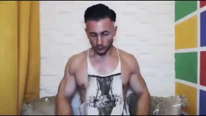 His birthday is May 11th 1993 making him 32 years old, and the average age of models on Flirt4Free is 25—making him one of the older models. His height is 176cm, and his weight is 87kg. He identifies his ethnicity as caucasian. He has a shaved pubic hair, muscular body with black eyes and short black hair.