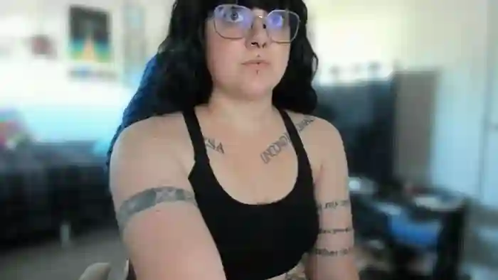 She is 26 years old, and the average age of models on Streamate is 30—making her one of the younger models. Her height is 5'6, and her weight is 165 lbs. She identifies her ethnicity as white. She has a b cup size breasts, hairy pubic hair on a curvaceous body with blue eyes and dyed hair.Her body art includes tattoos, piercings.