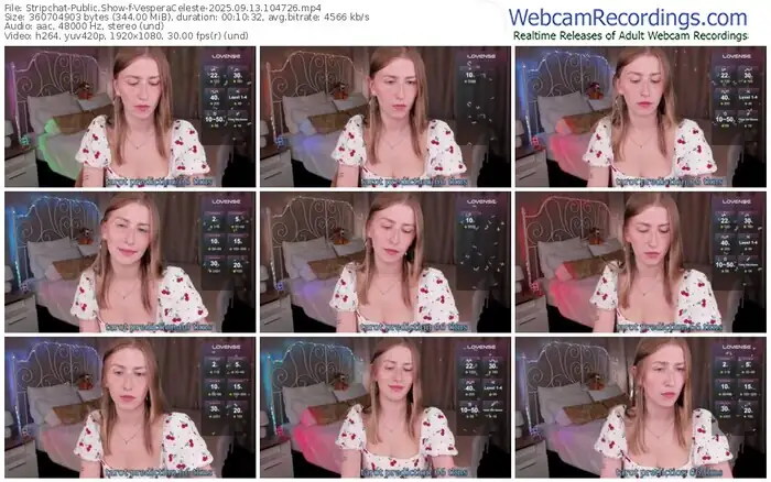 There are a total of 4 recordings (2 hours) of VesperaCeleste from Stripchat available below.