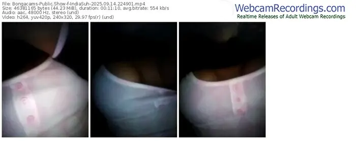 There are a total of 4 recordings (21 minutes) of IndiaSuh from Bongacams available below.