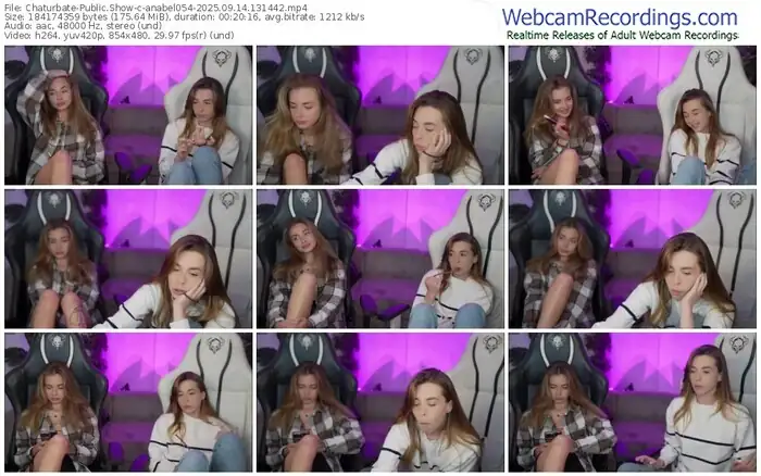 There are a total of 8,278 recordings (7,591 hours) of anabel054 from Chaturbate and Dreamcam available below.