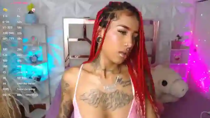 Her birthday is June 12th 2000 making her 25 years old. Her height is 165cm, and her weight is 52kg. She identifies her ethnicity as black. She has a trimmed pubic hair, and d cup breasts on a slim body with blue eyes and long red hair.Her body art includes piercings, tattoo(s).