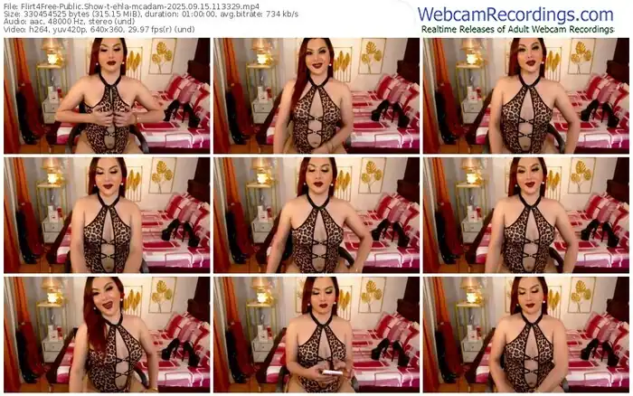 There are a total of 580 recordings (364 hours) of ehla-mcadam from Flirt4Free available below.