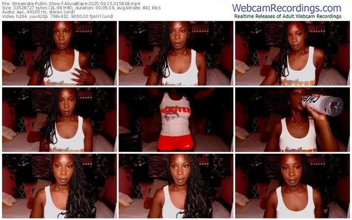 There are a total of 1,346 recordings (257 hours) of AliviaBlaze from Streamate available below.