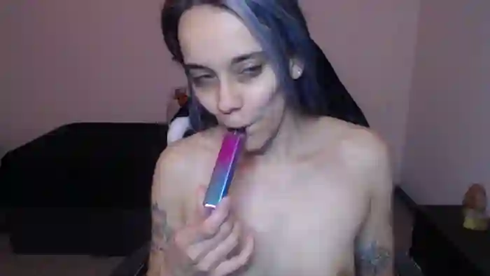 She is 30 years old. Her height is 5'1, and her weight is 125 lbs. She identifies her ethnicity as white. She has a b cup size breasts, trimmed pubic hair on a petite body with blue eyes and dyed hair.Her body art includes tattoos.