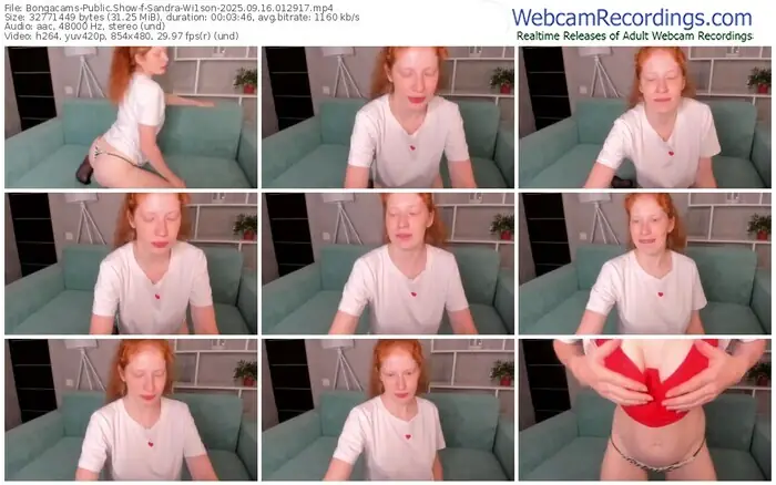 There are a total of 11 recordings (4 hours) of Sandra-Wi1son from Bongacams available below.